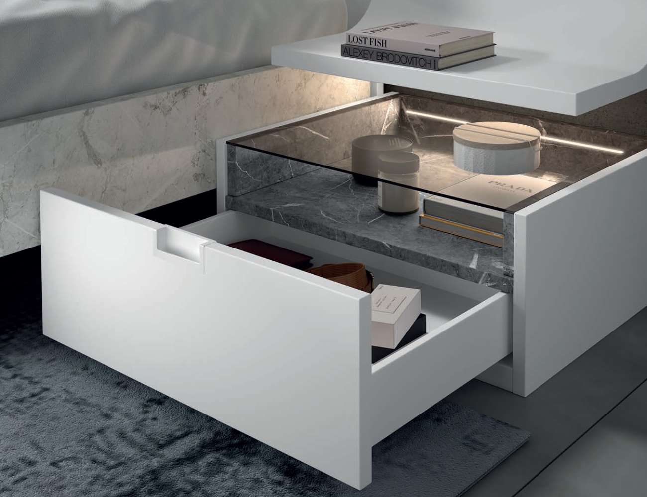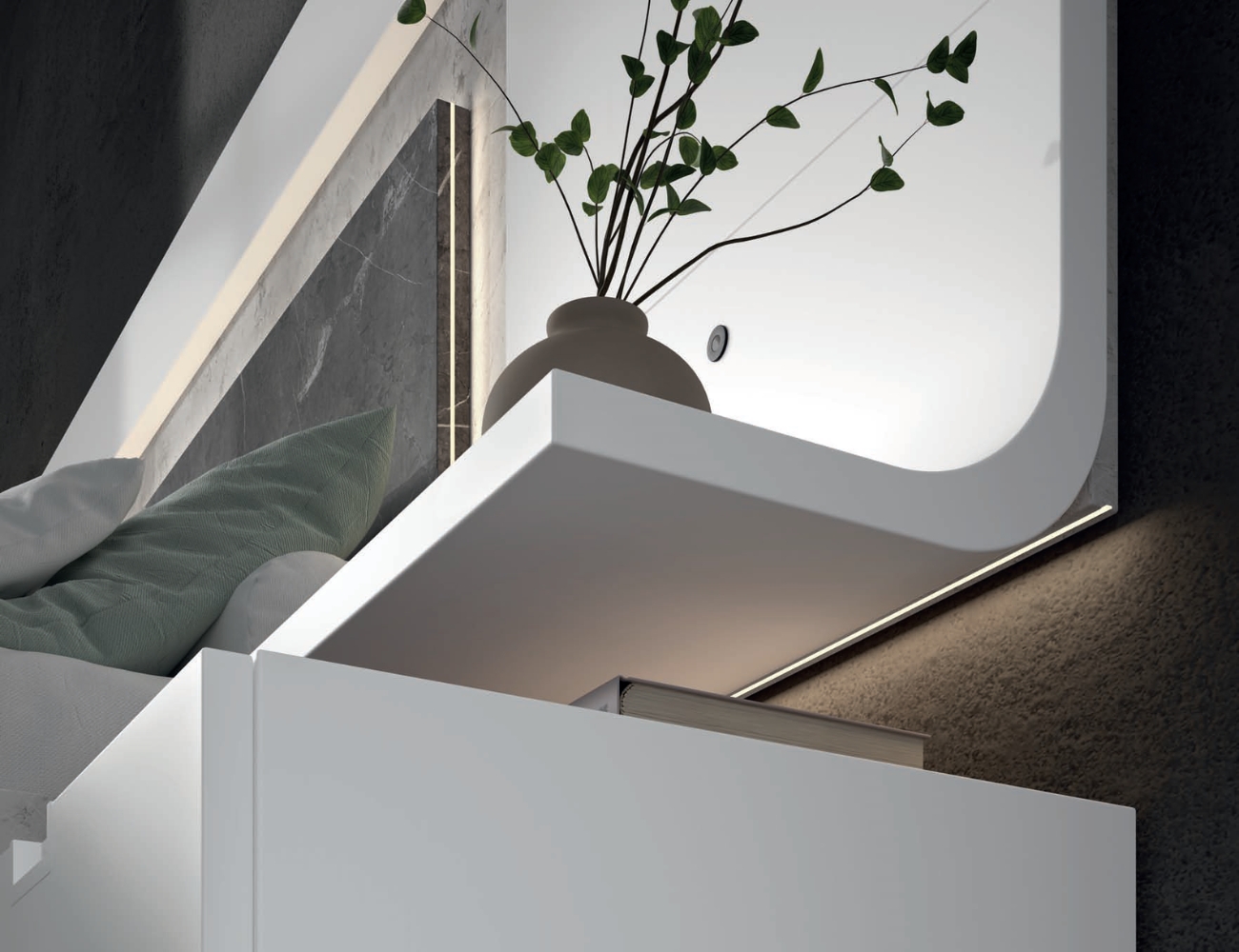 Tiradores y estilo: Tirador uñero Peke con líneas curvas suaves en cabeceros y mesitas, que brinda un toque de elegancia y modernidad al dormitorio.