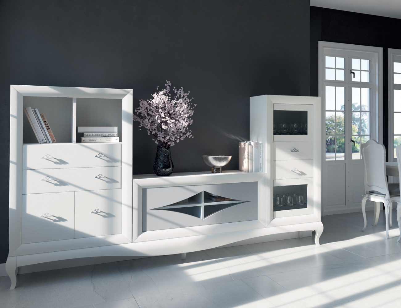 Con un estilo moderno y fresco, este conjunto destaca por su acabado en blanco brillante combinado con detalles en plata, que aportan una sensación de limpieza y luminosidad a cualquier espacio. Por un lado, las patas Isabelina en blanco proporcionan una base sólida y elegante; por otro lado, los tiradores Tribal mini en cromo suman un toque sutilmente sofisticado que realza el diseño sin sobrecargarlo. Gracias a esta combinación de materiales y colores, se adapta con facilidad a diferentes ambientes, desde comedores contemporáneos hasta espacios más clásicos y acogedores. Además, su estructura bien equilibrada permite una distribución práctica y armoniosa, logrando un conjunto que ofrece tanto estilo como comodidad visual. En definitiva, es una propuesta versátil y refinada que mejora la estética y funcionalidad del hogar.