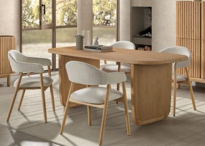 Esta silla destaca por una estética suave que aporta luz y naturalidad al ambiente. Su tapizado en blanco marfil, por un lado, ofrece una presencia clara y delicada que se adapta sin esfuerzo a salones, comedores o espacios de trabajo. Por otro lado, las patas de madera en tono roble suman un matiz orgánico que refuerza su estilo acogedor sin sobrecargar visualmente. Además, su forma sencilla y bien proporcionada facilita su integración en decoraciones modernas, escandinavas o más tradicionales. Así, se convierte en una elección versátil que une funcionalidad con una imagen cuidada.