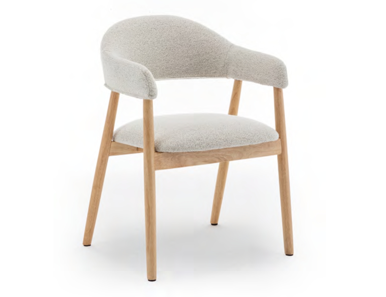 Más allá de su apariencia luminosa, esta silla ha sido pensada para brindar confort y estabilidad en el uso diario. El tacto suave del tejido se combina con la firmeza de la base de madera para ofrecer una experiencia sólida y agradable. Asimismo, los tonos claros de su diseño permiten que encaje con facilidad en cualquier conjunto decorativo, sumando equilibrio sin destacar en exceso. Incluso, el contraste entre el blanco marfil del asiento y el roble de las patas aporta un toque visual sutil pero elegante. En conjunto, es una pieza cómoda, resistente y perfectamente adaptable a distintos rincones del hogar.
