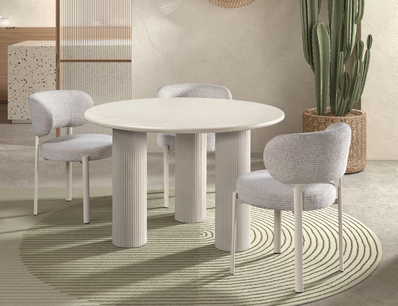 Con un enfoque en lo esencial, esta silla presenta una silueta moderna que se adapta con facilidad a distintos entornos sin perder identidad. Además, el tapizado en tela blanco jaspeado aporta un efecto visual ligero y actual, perfecto para ambientes que buscan un estilo fresco pero equilibrado. Por otro lado, las patas metálicas —en blanco marfil o negro— generan un contraste sobrio que realza su presencia sin sobrecargar el espacio. Asimismo, la elección de estos acabados permite integrarla en decoraciones tanto claras como oscuras, aportando versatilidad sin esfuerzo. En consecuencia, se convierte en una pieza funcional que suma diseño y confort sin renunciar a una estética refinada.