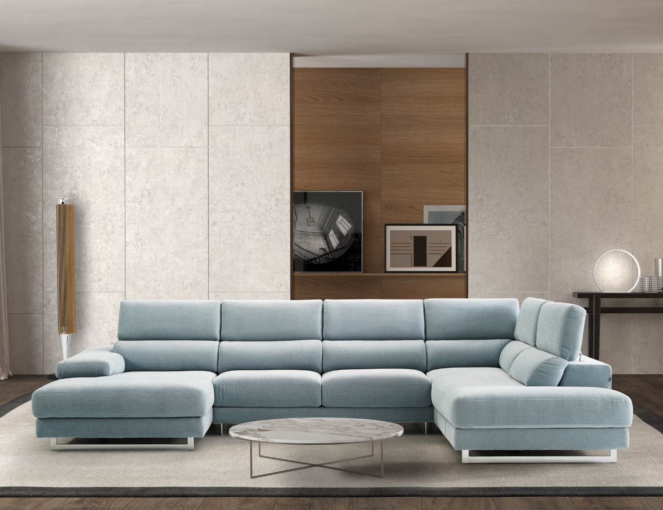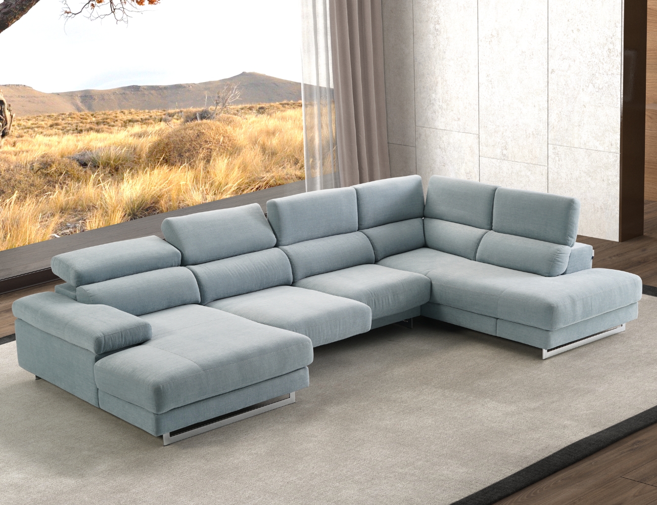 Cabezal: Tipo italiano, delgado e inclinable, facilita colocar el sofá junto a la pared sin perder confort ni estética.
