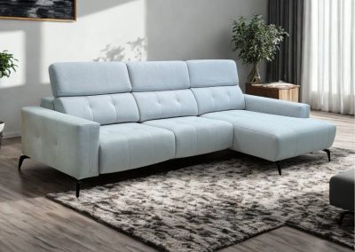 En cuanto a la suspensión, el asiento cuenta con muelles zig-zag de gran resistencia, mientras que el respaldo integra cinchas italianas de 80 mm que garantizan una sujeción uniforme. A su vez, las patas metálicas negras de 13 cm no solo aportan un aspecto moderno, sino que también facilitan la limpieza inferior. Además, incluye elementos funcionales como cabezal motorizado «Action», sistema relax Cardio System, brazos de 21 cm, mando inalámbrico individual y fundas desenfundables para el cabezal. En conjunto, ofrece un equilibrio entre innovación, confort y estilo práctico para el día a día.