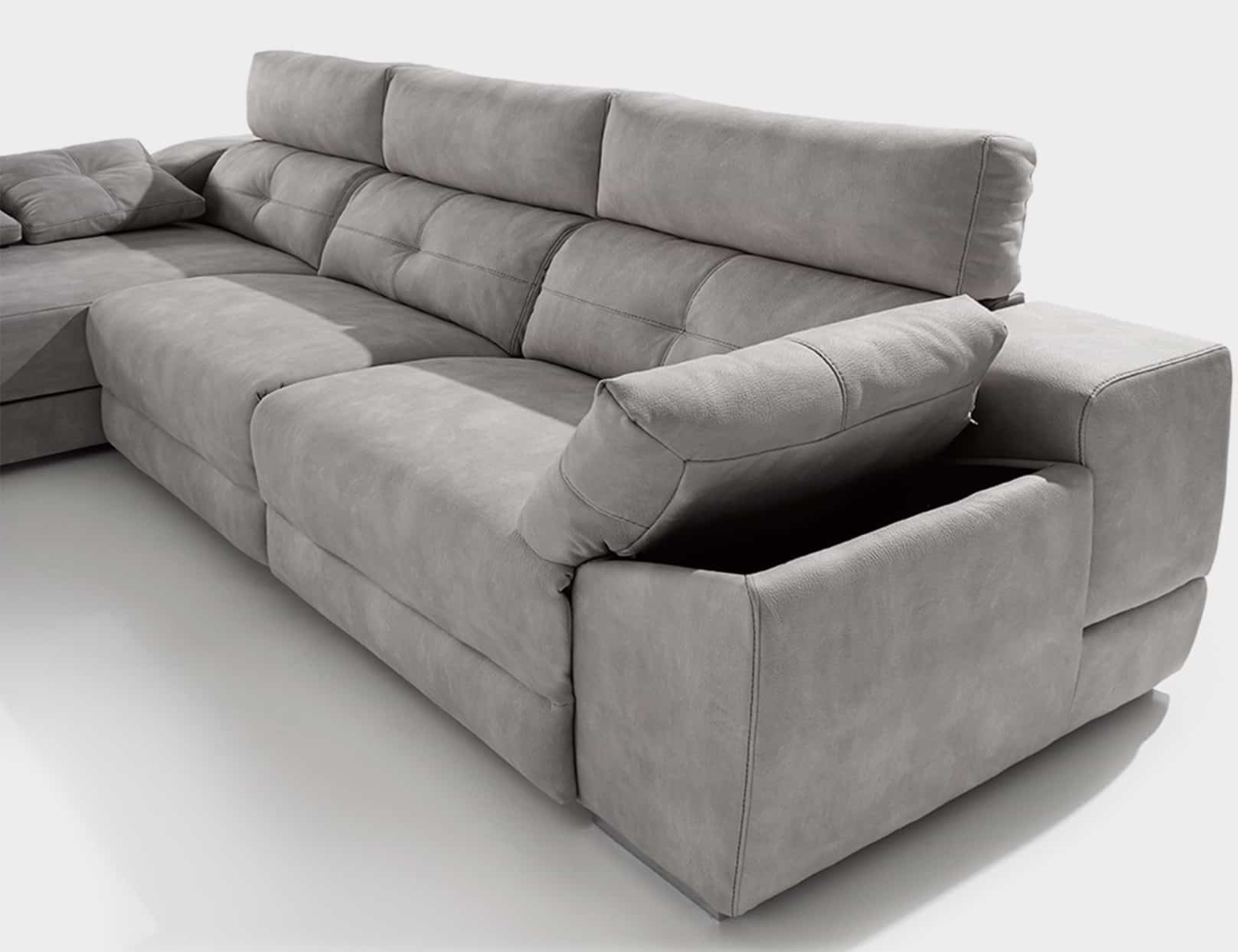 Módulo chaiselongue: Deslizante manual con arcón, con opción de motor eléctrico disponible.