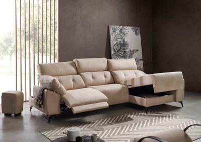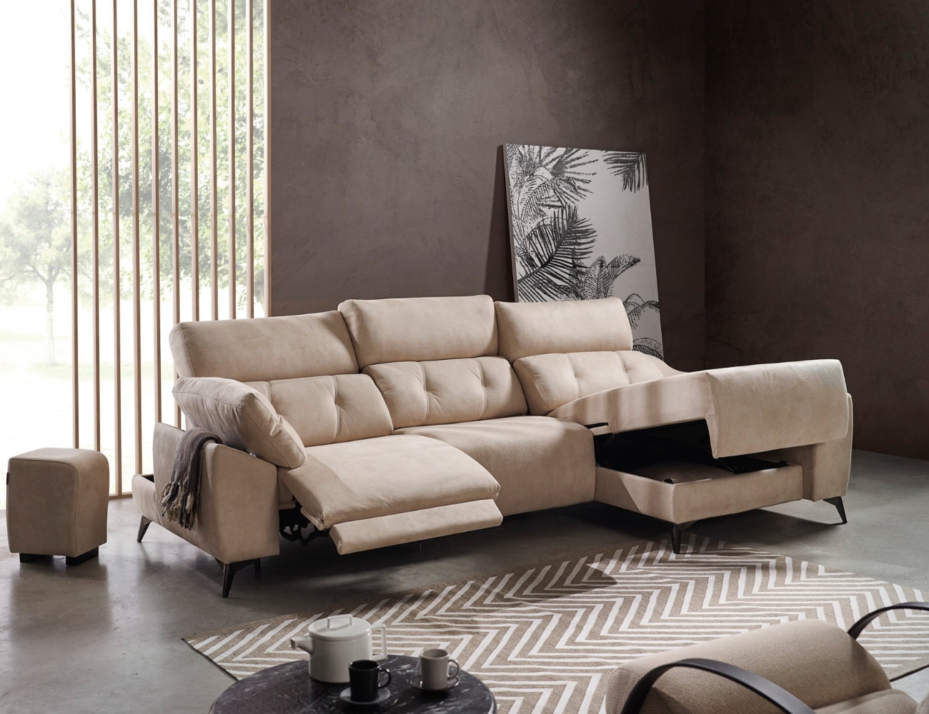 Módulo chaiselongue: Deslizante eléctrico con arcón, ofreciendo comodidad y espacio extra para almacenamiento.