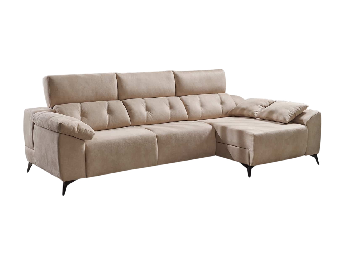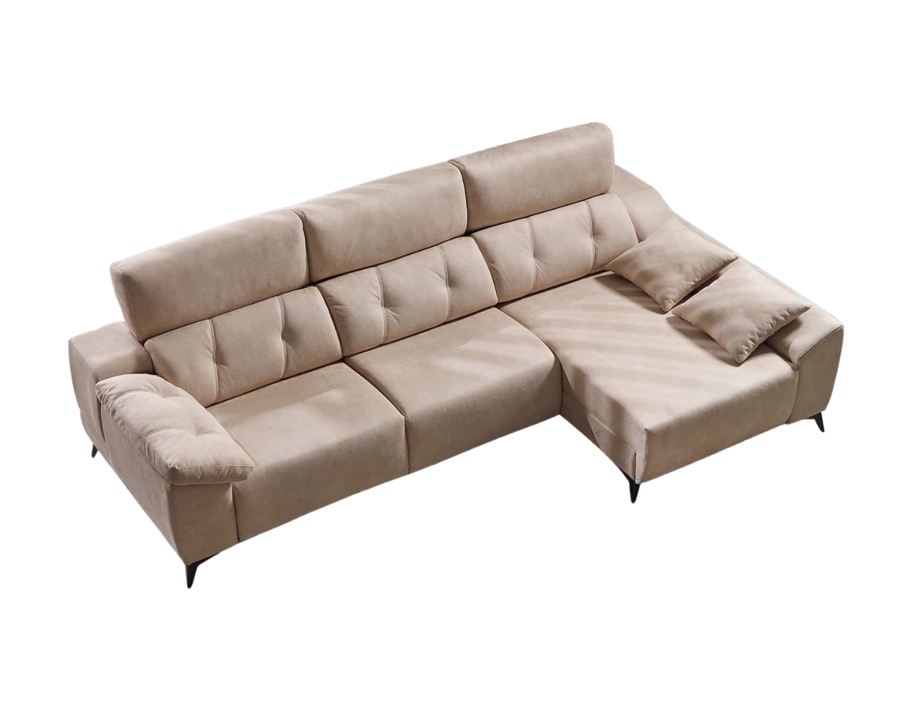 Respaldos (cabezal reclinable): Espuma de poliuretano 20 kg suave, cubierta con fibra para un apoyo cómodo y adaptable.