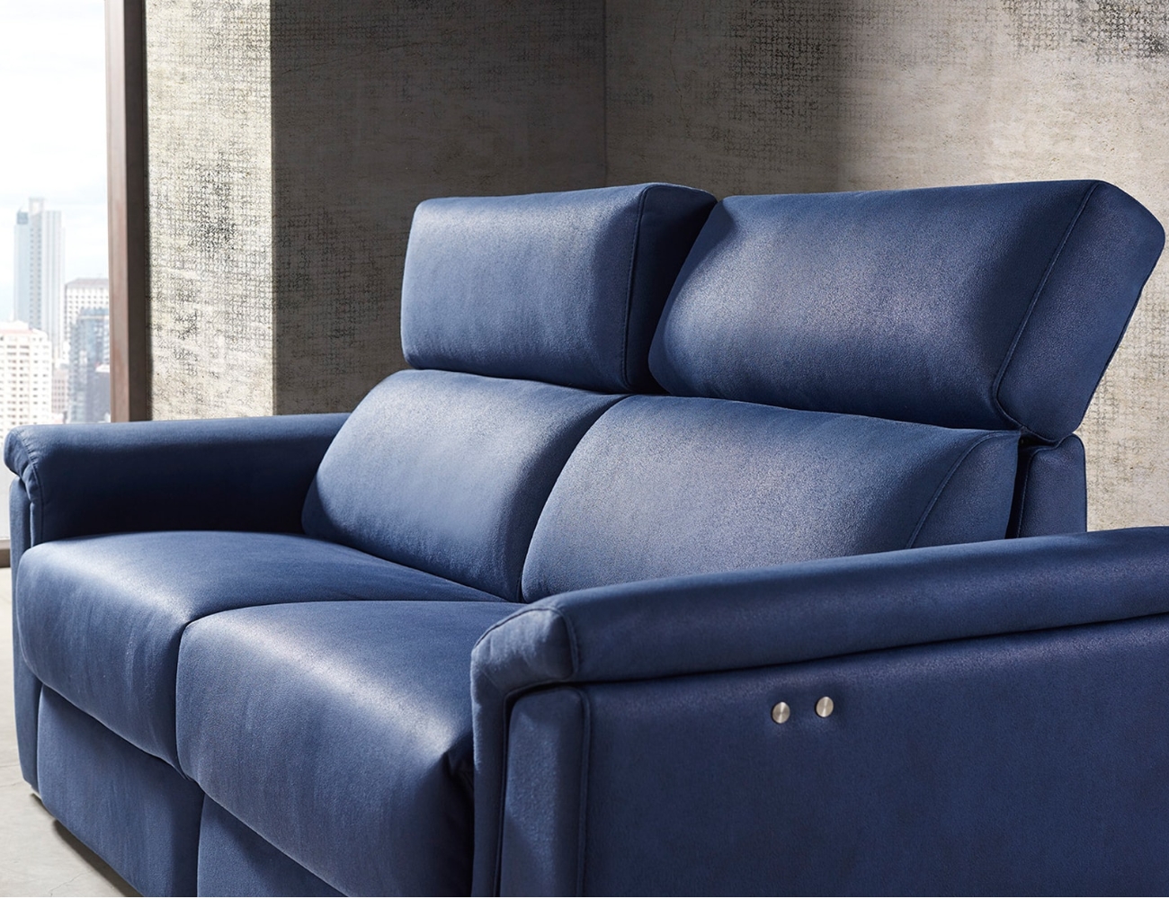 Además, los brazos fabricados en espuma de 25 kg recubiertos de fibra aportan una sensación mullida y constante; por otro lado, el sistema rolen en las fundas desenfundables permite un mantenimiento práctico. Las botoneras externas hacen más intuitivo el uso del mecanismo relax eléctrico S.999 de estructura fija, y finalmente, las patas cromadas de solo 2,5 cm completan el conjunto con un diseño discreto y moderno.